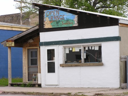 ![]() Sign in the window of the Buck Stop meat processing store, Crawford.