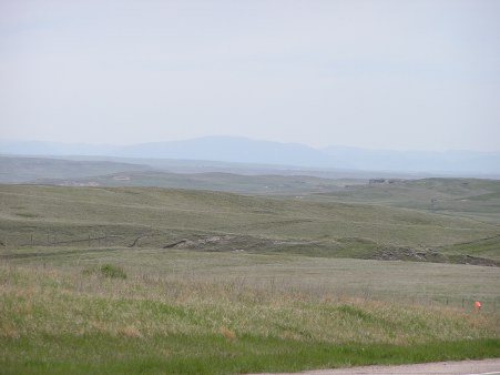 ![]() Back on the road. First view of the distant mountains along US 20. This is in western Nebraska, not far from Wyoming.